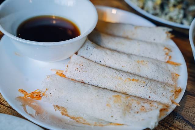 这个手工薄饼真的特别好吃,以前吃得薄饼都是包菜的,但这里好像报了萝卜丝还有一些别的,蘸料是酸甜的,整个薄饼酸甜爽口,一份才五元,一定要吃一下!
