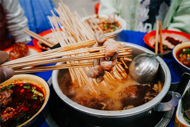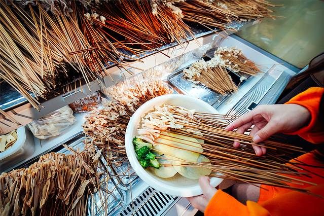 所以今天弄好东西之后,我跟泰泰就没有看别的美食店铺,直接打车前往马路边边麻辣烫,感受地道的成都老味道
