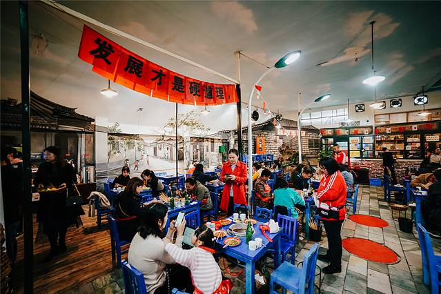 店铺的装修实在是太特别了,非常有年代感,店里面拉着的红色横幅上面还有发展才是硬道理及其特别的标语,下面蓝色的桌椅小板凳更是一秒把我拉回了90年代。店里面的前台还是小卖部的装修模样,特别有怀旧的感觉。随便拍拍都很有韵味。店里面的店员服务态度炒鸡热情的!带着成都口音的招呼听起来格外亲切,好像就在家旁边的店里面吃饭一样。