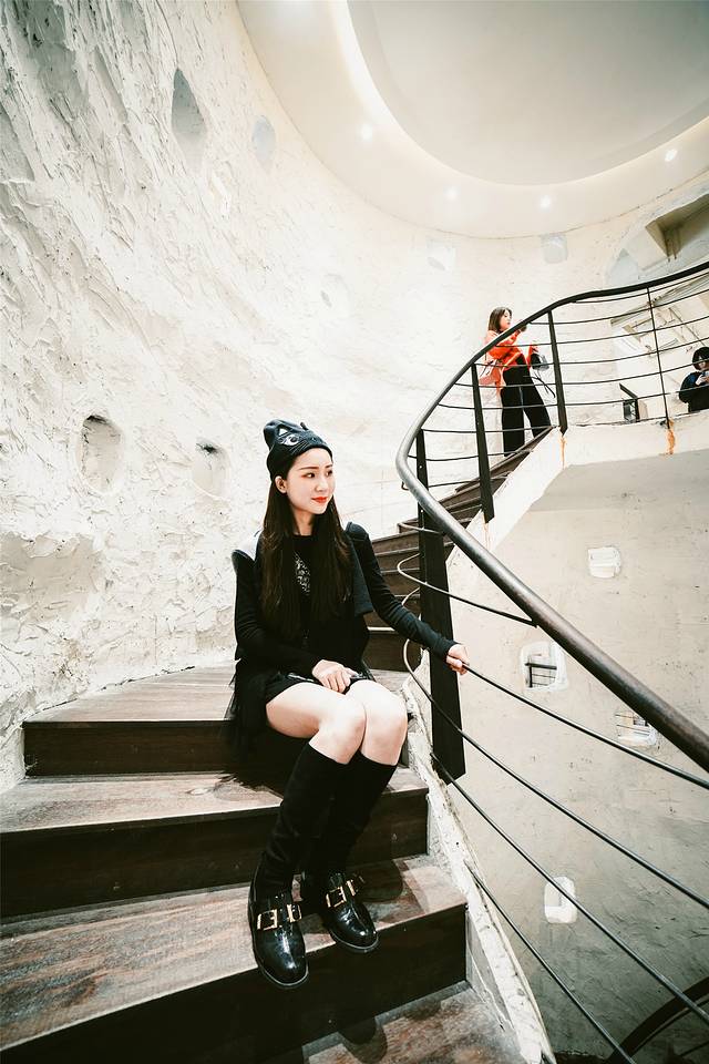 分布不均的小窗户和粗糙水泥打造出来的洞穴风格超好出照片的,建议穿黑白灰的衣服,拍出来的照片不仅酷炫,还特别有ins风!