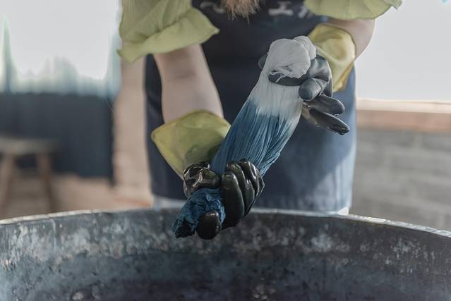 当然,这里最有意思的还是这家蓝染工坊,一条白色的围巾在扎染老师的悉心指导下成为了一条独一无二的极具艺术的艺术手工艺品。
