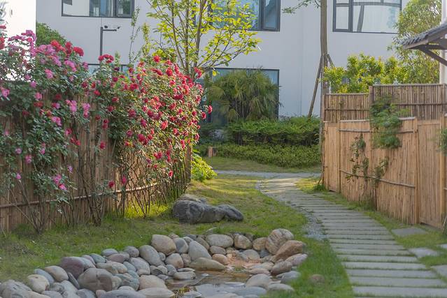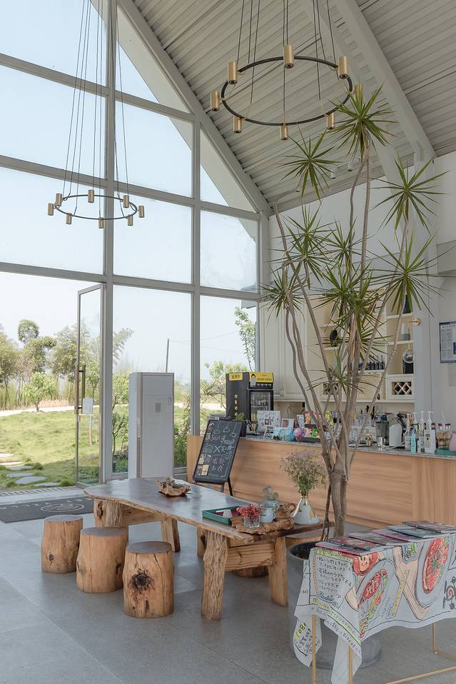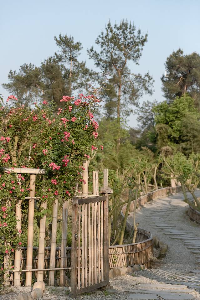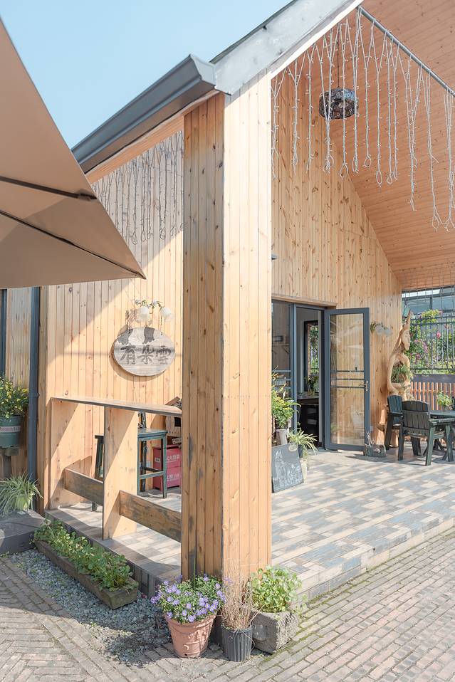 “晓得”是明月村里的“深宅大院”,园林隐蔽的设计,把它的入口挡在了树荫之后,路边的一块遮挡木墙,仅留出几个小窗,让有心人留意。