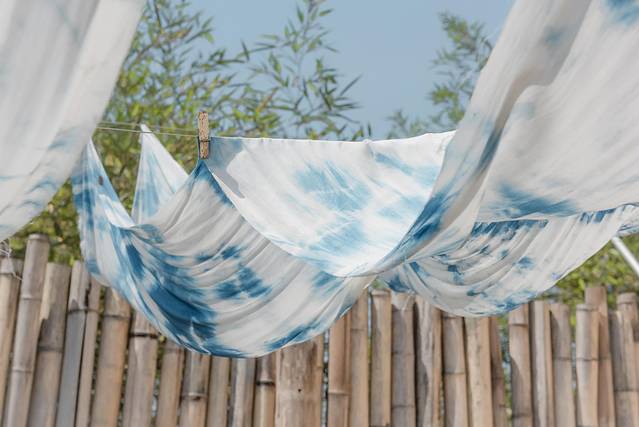 《诗经》里一句“终朝采蓝,不盈一襜”,让有着近3000年历史的蓝染,听起来那么深远,可当手指触碰到那些在风中摇曳的绢丝布料,脑门里充斥着草木染料的味道时,又变得那么亲近。