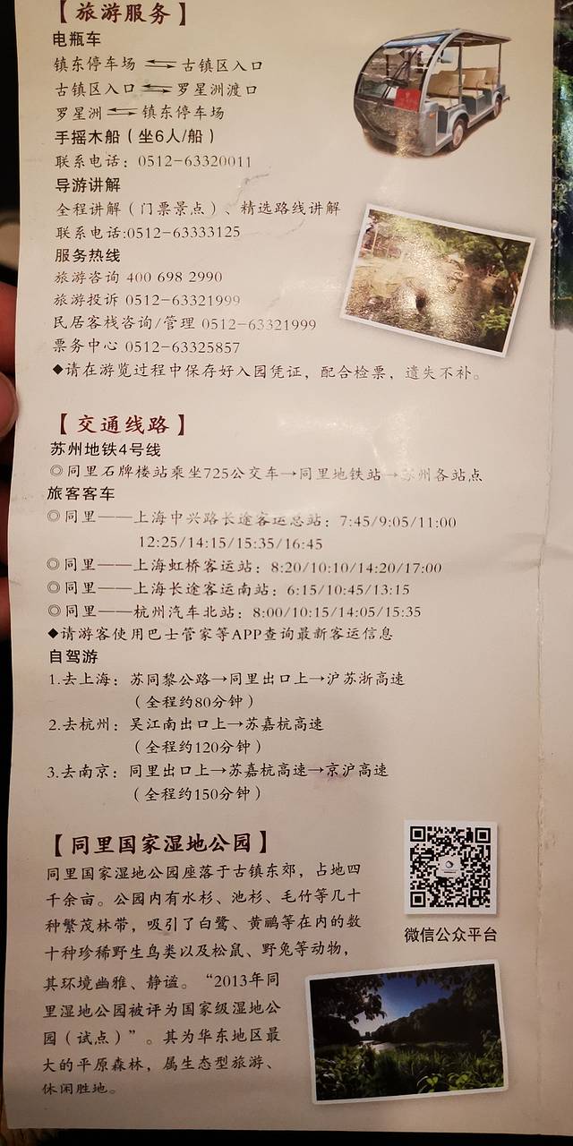 4号线到同里,地铁口就有售票点和免费接驳大巴,直接到同里镇北停车场,师傅说平常100门票时地铁口是88,超方便。17:30半前是半个小时一班,17:30后是一个小时一班,末班车是20:00。