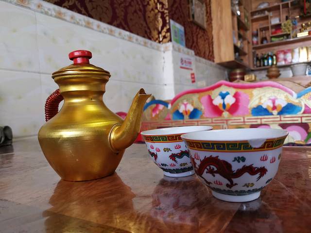 奶茶:我还挺喜欢这里的奶茶的,也喜欢这种壶。这个是金色的,昨天那个是银色的。🤗怎么说呢,就是那种没喝过的味道,没勾兑的感觉