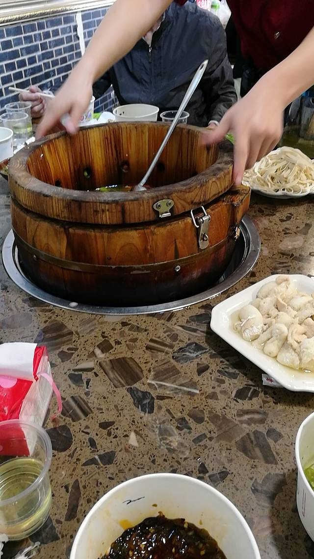 西风楼下的木桶鱼,再配一壶青木槐果酒,一家人巴适了很:)