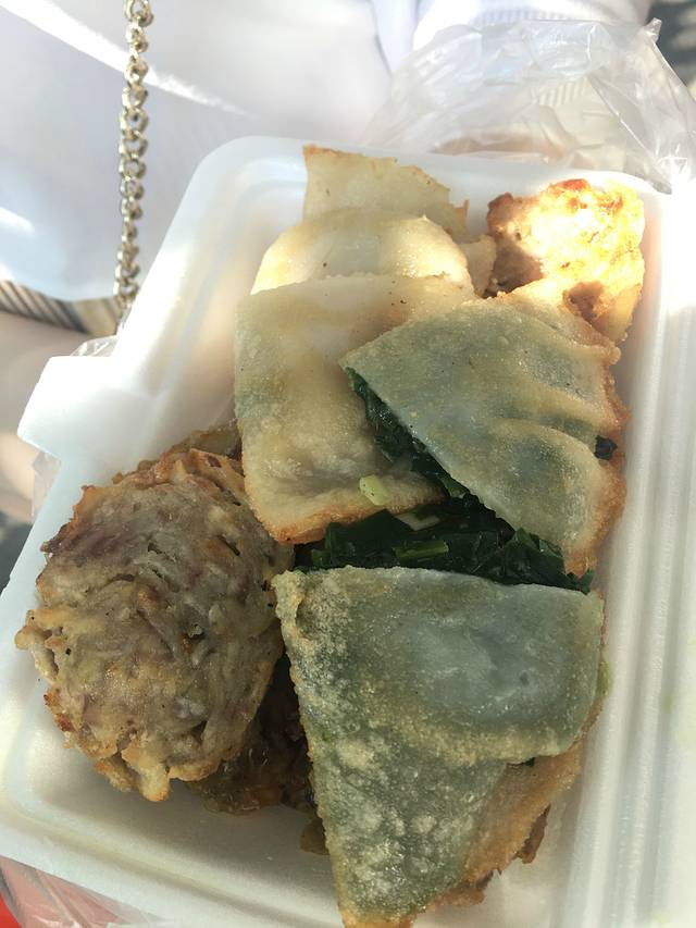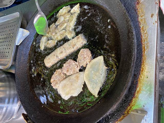 店铺就在西马路小吃的对面,过个马路就能到了,还是很方便的。是鱼肉做的各种形状的饺子,煮出来很鲜甜。15块/碗,还有三拼和五拼。我们只叫了2份,留着肚子吃其他。价格嘛在这所有小吃的算中上的了。