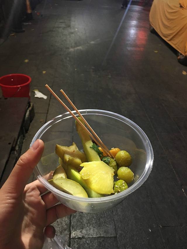 这是 传说中的七丛松甘草水果,牌坊街上卖甘草水果的很多,有15、20、25、30几个价格,水果种类任选,不同价格用不同的盒子分装。EMM。。。我这个是 15块的。(贵不贵不好说,后来我去另一家店买的25块还是很多的)