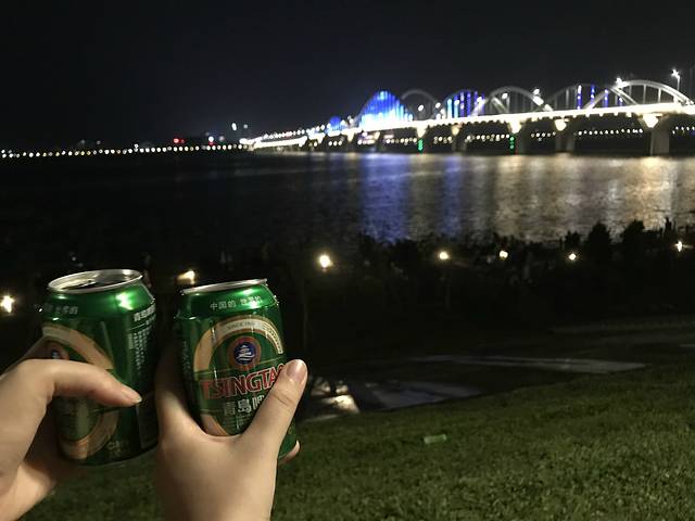 坝上买的5块钱一瓶小酒,愣是吹风到10点半,舒服~~