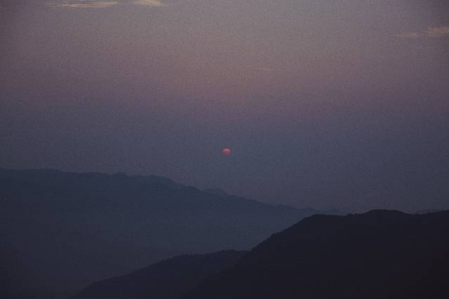 太阳在五六点会缓缓升起,月中时会遇到未下山的月亮