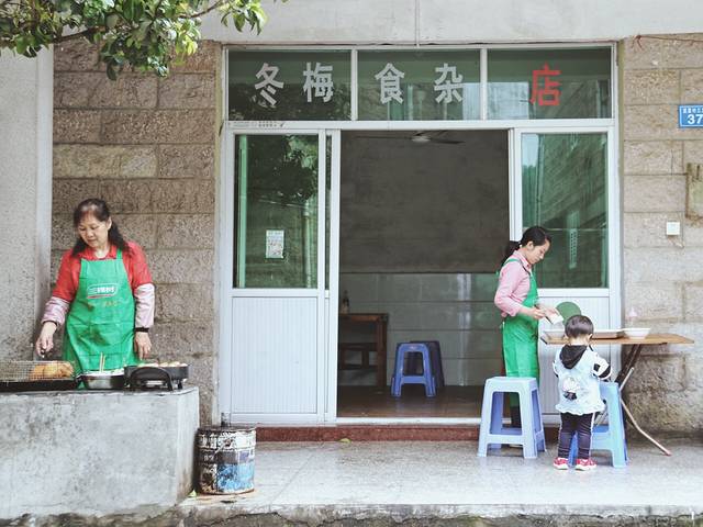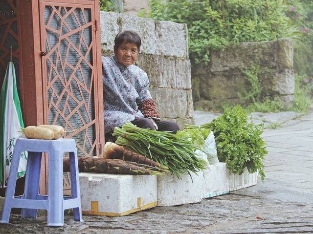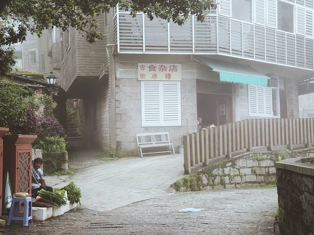 石砌的老街里的山间食杂、店大雾里的人与自然