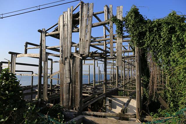 过水屿上有很多破败废弃的残垣断壁,这座无人小岛上破败的石头房记录着这个小岛的很多历史,还有杂乱无章插着的木桩(估计是以前晒网或者晒干货用)这可是拍照取景的绝佳的场地,只要你视角找得妙,大片感可以说随便就来,从过水屿出来再往北面走就是观景台,天气晴好的时候可以看到西南面的岛碉甚至是南麂岛,还有呼啸而过的渔船在这里也可以看到。在我眼中过水屿应该是小岛的精华所在,是必须要去的一处所在。
