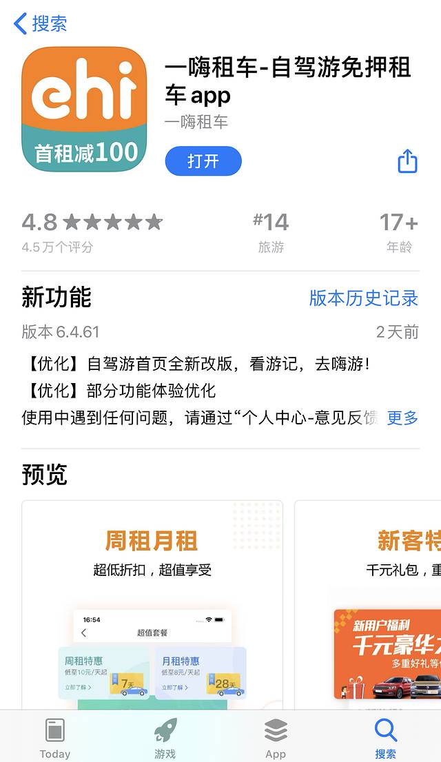 这次我用的【一嗨租车】,主要是看中了新用户第一次租车的100元优惠。