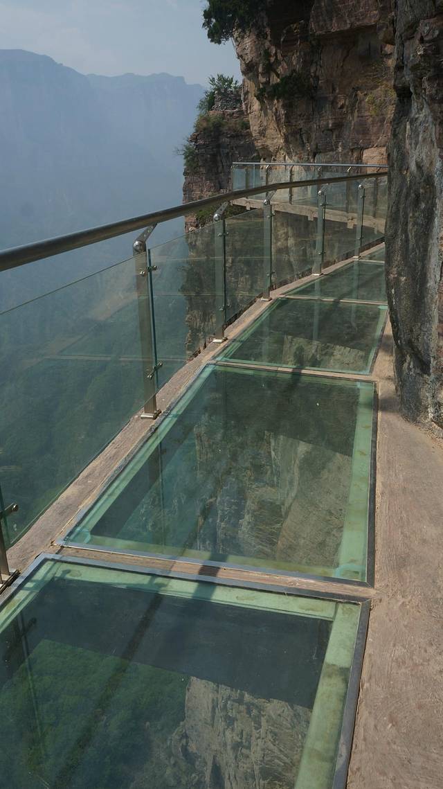 天界山有两个栈道,一个是水泥的一个是玻璃的,在绝壁上走栈道还是比较刺激的,上面还有个老村,感觉也不错。如果服务再好点,也就不会留下遗憾了。我们没有坐缆车去老爷顶,因为转山一圈看到的景色也都全了。