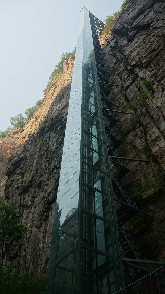 第三坑:电梯出来去瀑布上游仍然有几公里路程,需要做观光车,收费10块,途中看到对面山崖有“天梯”,我们咨询司机“天梯”是否可以爬,答案是不可以,需要坐观光车返回到电梯后再下去。结果我们步行至天梯口的时候发现,交20元钱就可以走天梯了,并且可以到达瀑布下面。这个时候我们明白了,电梯不需要往返是可以看到瀑布的,景交车当然也不需要往返。我们就浪费了往返的电梯票,花了20块钱从天梯下到瀑布景区了。