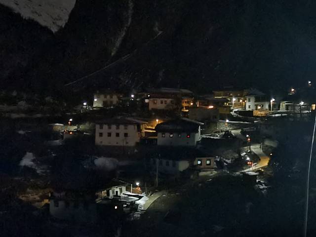 夜幕下的雨崩村,灯火点点,但其实在山脚这边真的很静,里面好像住的都是一些上了岁数的老人~