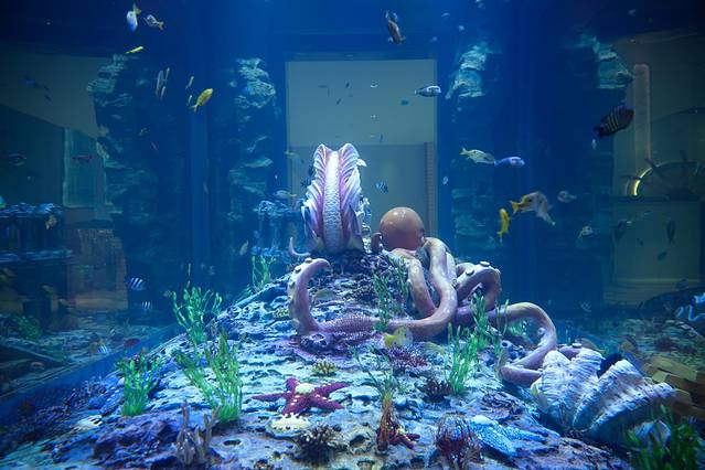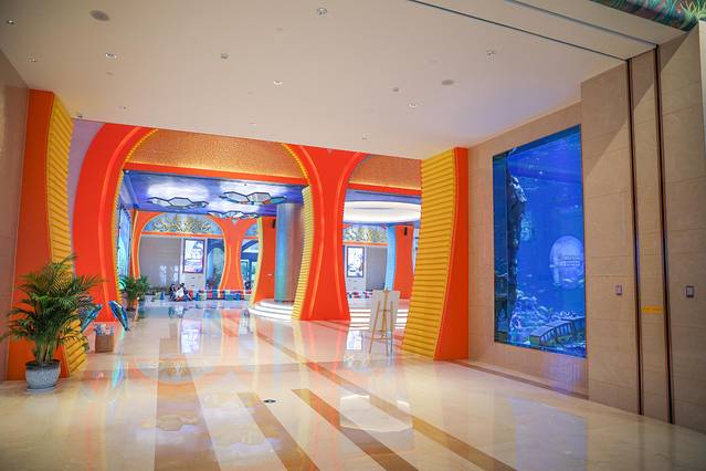 酒店大堂中央有一个超大的水族馆,里面有几十种鱼类,还有小鲨鱼,魔鬼鱼等。在这边拍照很出片。即使不去 三亚 ,不去沿海地区也可以游览水族馆了。重点是水族馆就在酒店内部,随时都可以观看。