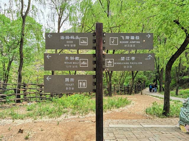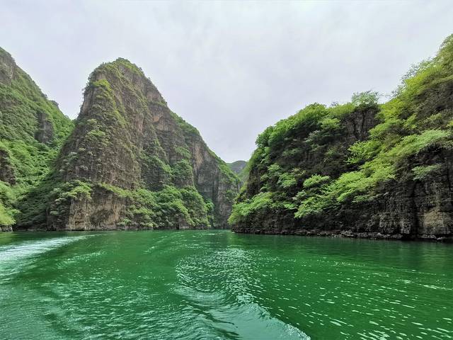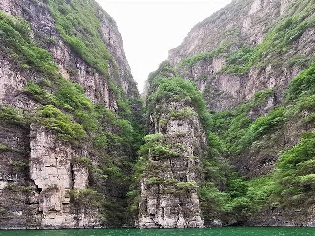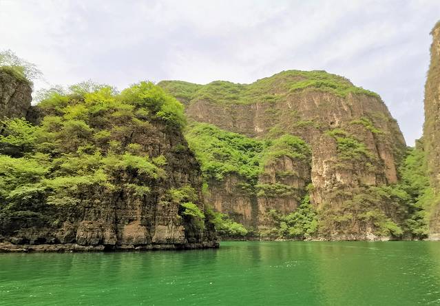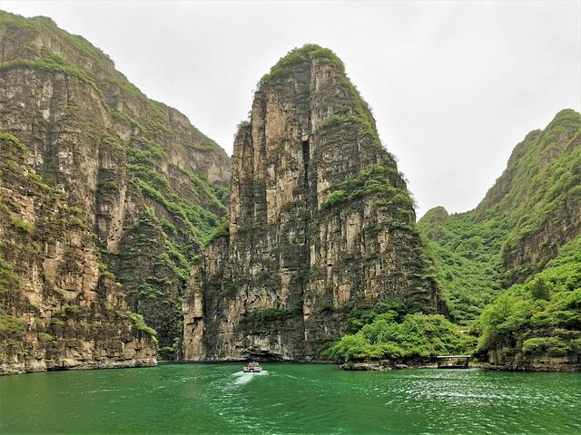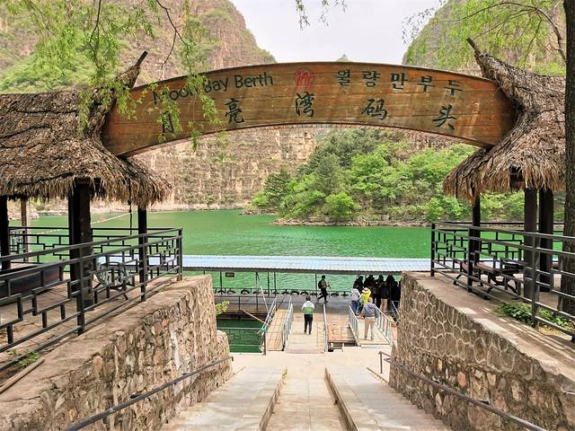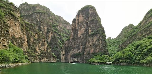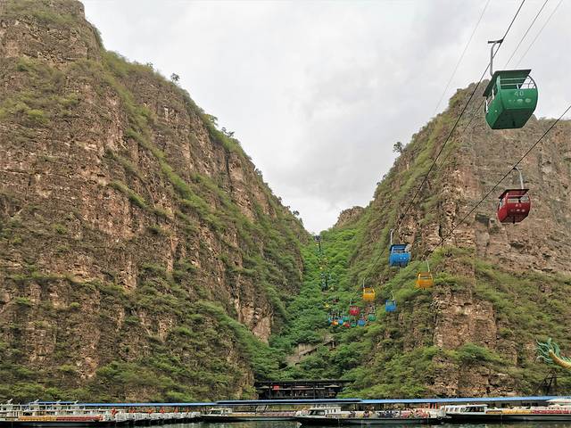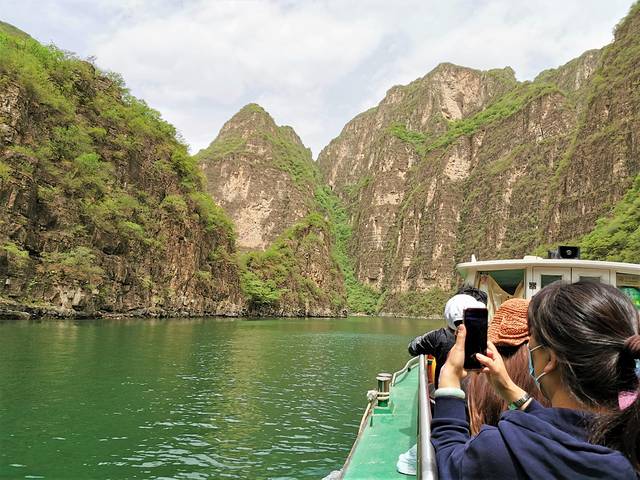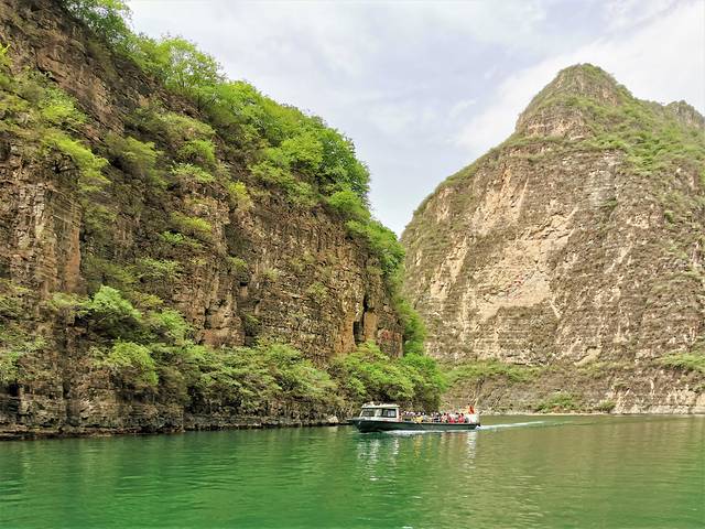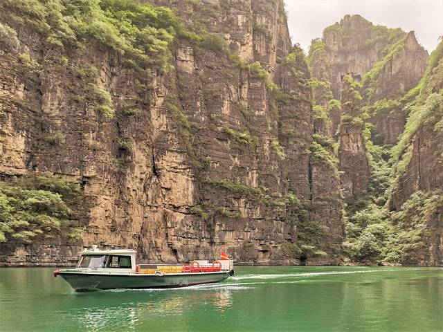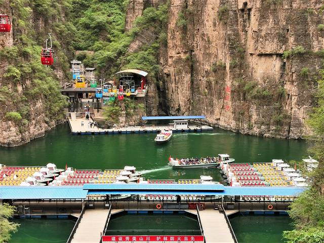 从玉皇顶原路返回,下到游船码头,乘船游览龙庆峡谷。