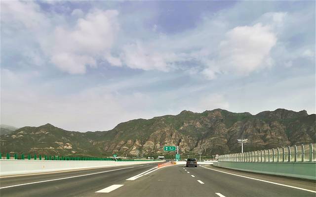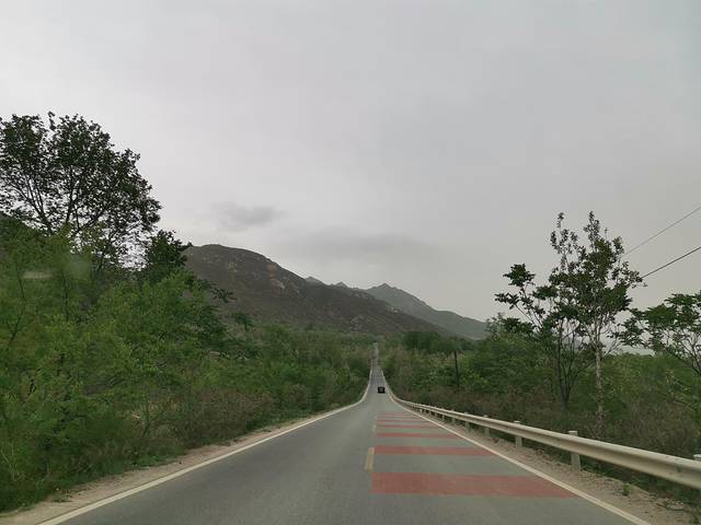 古龙路,听名字就是专门连接龙庆峡和古崖居的。行驶在古龙路上两侧绿树成荫,远处大山巍峨,道路随地形起伏向前蜿蜒。