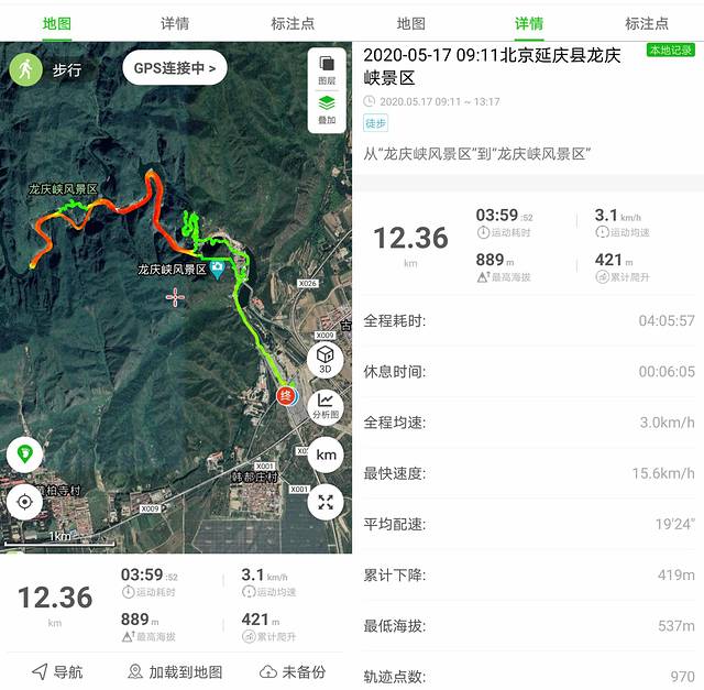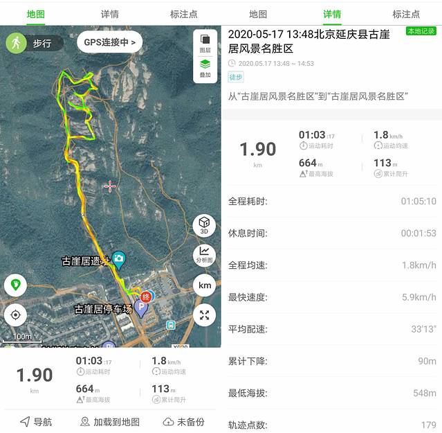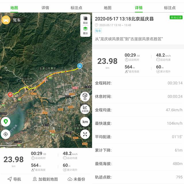13:20龙庆峡停车场出发,13:48到达古崖居停车场。