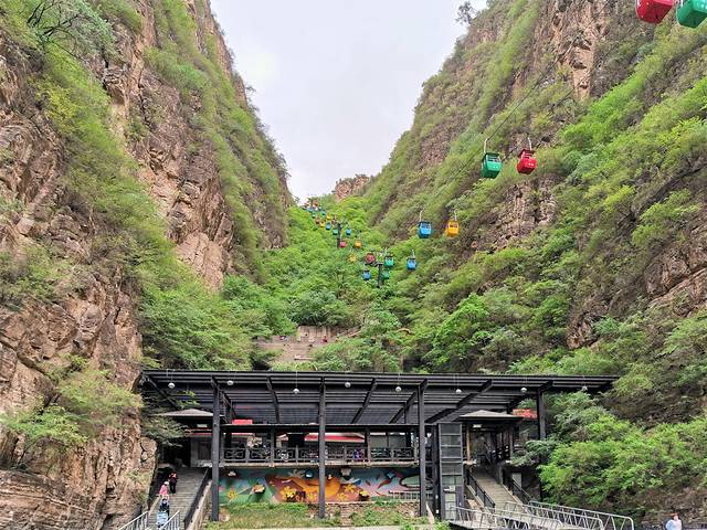 坐索道:停车场-商业街-检票处-龙形电梯-游船码头-乘船游览龙庆峡-金刚寺码头-金刚寺景区-月亮湾码头-高空索道下站-高空索道上站-一线天-神仙院-玉皇阁(原路返回)-高空索道上站-高空索道下站-百花洞-景区出口。