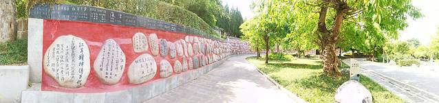 满满蜿蜒的一墙鹅卵石般的石头上都记载着与红军有关的事宜