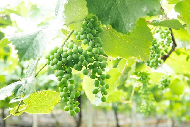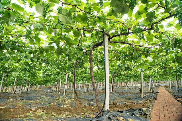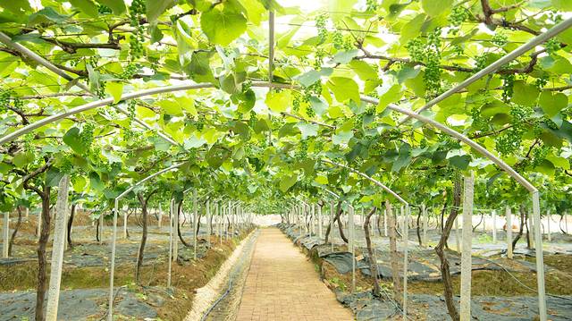 大棚中的葡萄挂果累累