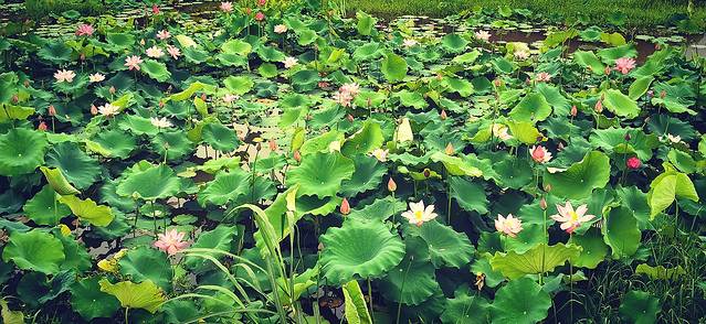 池塘边还有一块荷花池