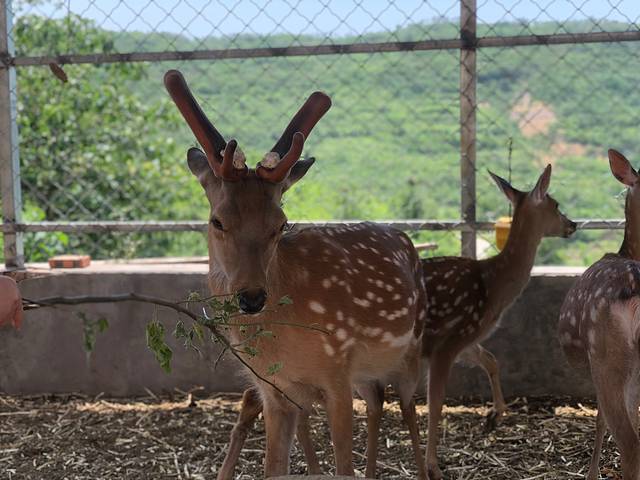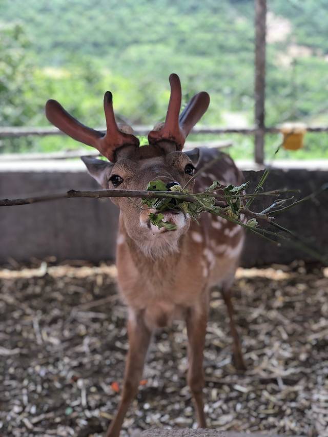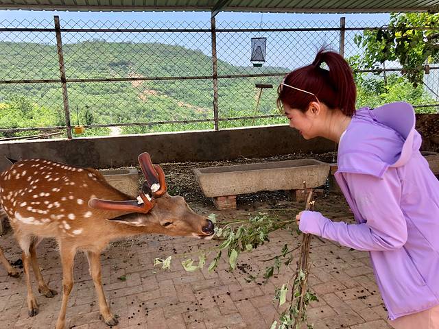 景区不收取门票,只收10元停车费,如果想喂梅花鹿的话,一人5元,给你一把树叶🍂,就可以进去喂了,可以0距离投喂呦。