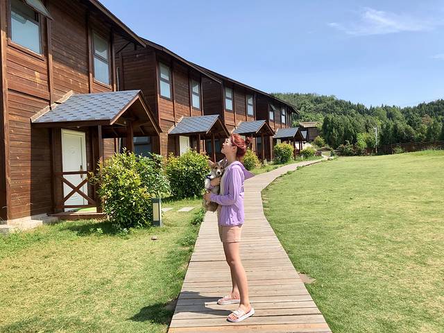 鹿园旁边有一条岔路口,向上走,就是房车基地和吃饭的地方了,那里的特色就是一鱼四吃(酸菜鱼,红烧鱼,炸鱼片,剁椒鱼头或者可以要不辣的)都可以做,味道还是挺好吃,价格稍稍有一些贵,毕竟是景区嘛。吃完饭原路返回,回到鹿园,再往鹿园对面的下坡路走,就是小木屋这里了(不过要走一小段路,车可以停门口)风景真是太好看了,随便拍都很好看,有点云南的即视感。