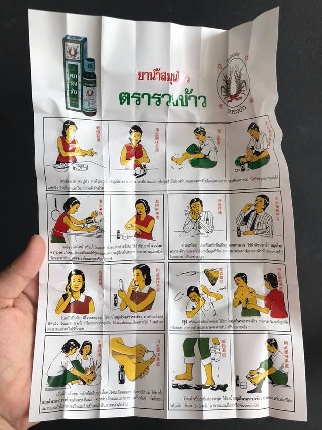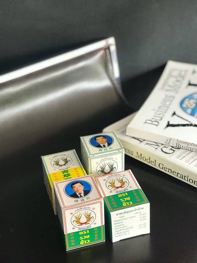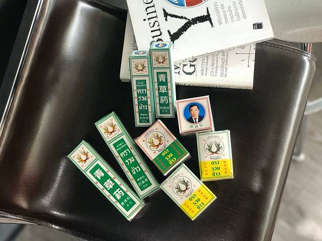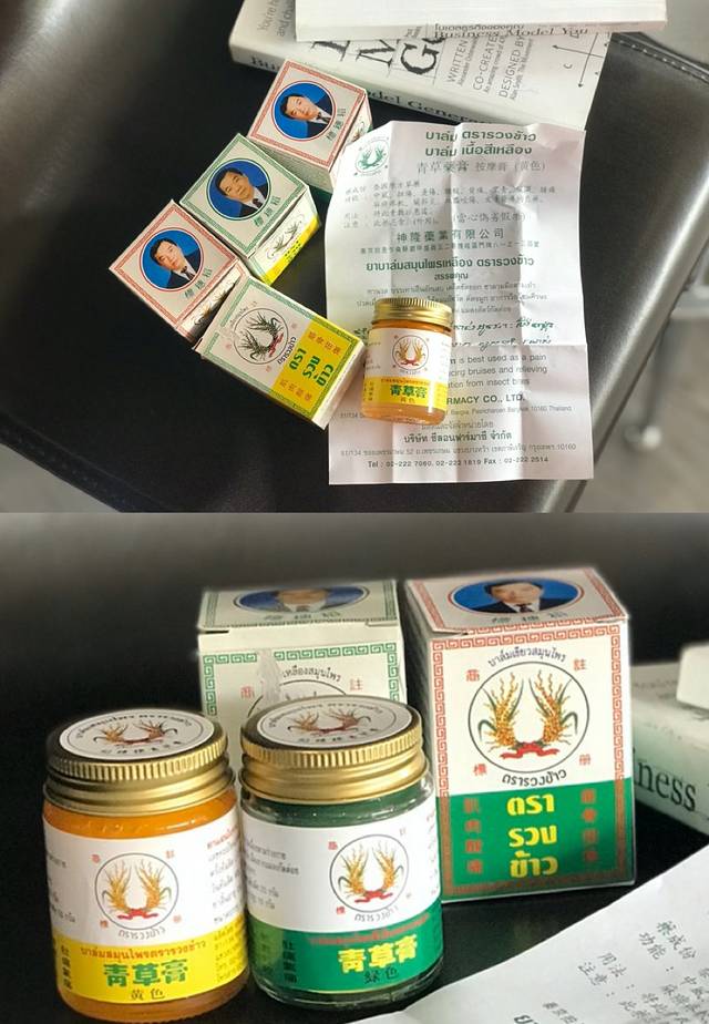 我买上一件的时候就看见有清凉油销售,所以我去查查产品功能,很奇怪为啥有两种包装。原来是有真的和假的。正牌的包装是白色的,上面有个老人(可能是老板?),通过泰食品和药物管理局保证了,和上面的药水的标志一样,所以我就决定买了。