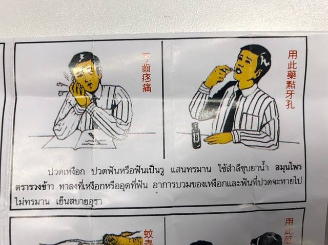 它是万能药,最重要的是价格不贵,在网上能买到,去泰国也能在药房、顶级商场买到。可能在泰国卖更便宜,但是我也觉得在网上那么贵。如果牙齿突然发作,吃止痛药没有效果短时间内又无法去医院,试试这个种药吧。