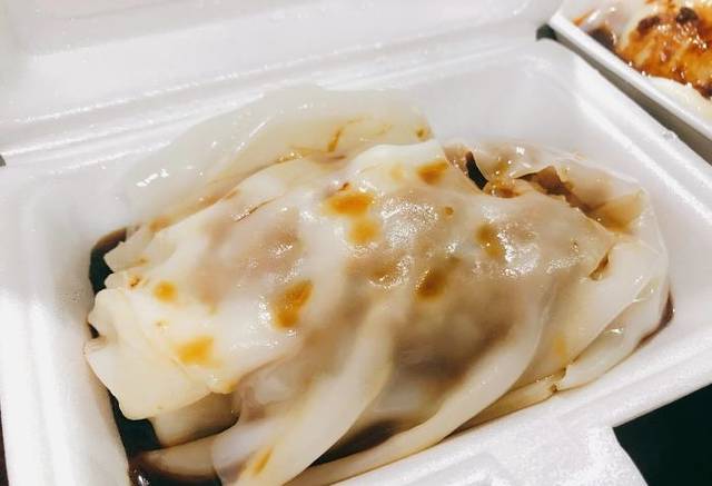 在店员做肠粉时,问我们要不要辣,但没想到这家店的“辣”就是甜甜的豆瓣酱……说实话没有豆瓣酱肠粉应该会更好吃。