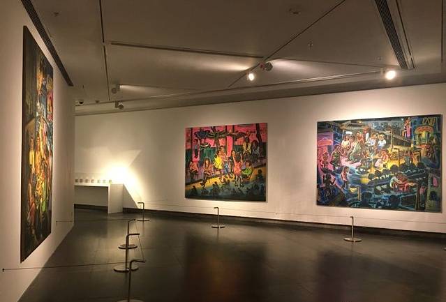 广东美术馆和中山大学南校区是做攻略时看到的,这两个景点被珠江隔开,我们当时逛完美术馆后,扫了两辆共享单车,经过立交桥骑行去了中大南校区。广东美术馆展览了一些广东艺术家的书画作品,免费且值得一看。