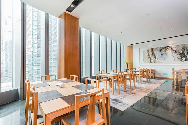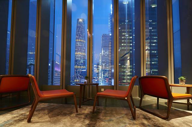 大堂是在17楼,所谓“登高望远”吧,酒店的大堂和餐厅都设置了硕大的落地窗,能全方位观赏到珠江新城的城市美景。大堂附近有一个餐厅和饮料吧,会提供自助餐、咖啡、水果茶、甜品等,酒店的自助餐还是很丰富的,但是因为我们行程安排比较满,没有在酒店品尝自助餐,有兴趣的可以去尝试一下。酒店大堂内还有一个健身房,虽然空间不大,但是里面的健身器材很齐全。