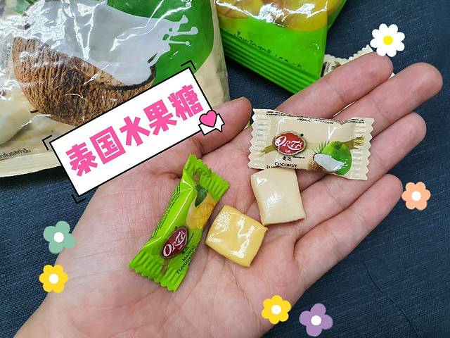 这个也好吃,很适合买送朋友们。泰国水果糖是耐嚼糖果的质地,很香。哪个就有哪个的水果味。你们一定满意,榴莲味、芒果味、椰子味、波罗蜜味、山竹味都有。