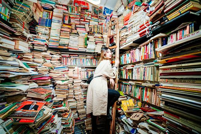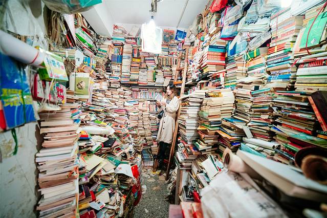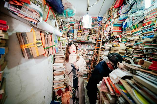 不同的书屋有不同的气质,书店不仅仅是一个买书的场所,更是一个精神的世界。店主原本设立这间书屋也是给自己作为一个读书的地方。读书给读者带来别样的读书感受,这些被收来的各种旧杂志旧书刊一摞叠着一摞,高高的垒到屋顶,把小小的空间塞得满满当当,书中自有黄金屋,谁不想拥有一个像这样的旧书小屋呢?一张梯子架在屋子中间,剩余的空间只能容纳两三个人。想要拿到上面的书,必须踩着梯子爬上去才行。因为拍照的人太多,店主立了个规矩——拍照可以,拍完照买够20元的旧书支持一下书店。我觉得这样也蛮好的,大家付一点钱,增加书店的经济收入,也能书店生命力更强,开得更久。