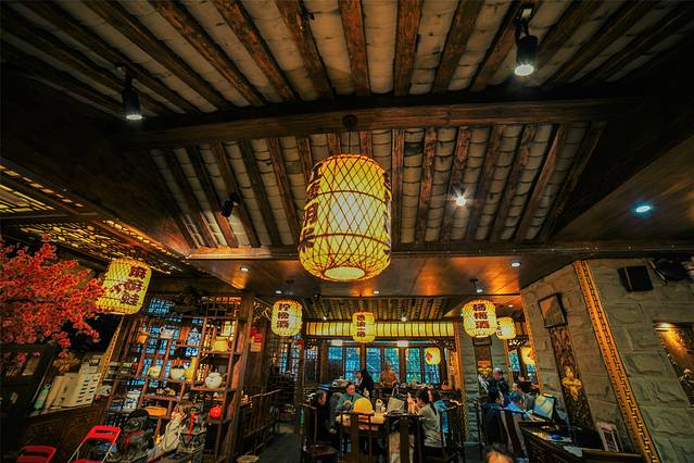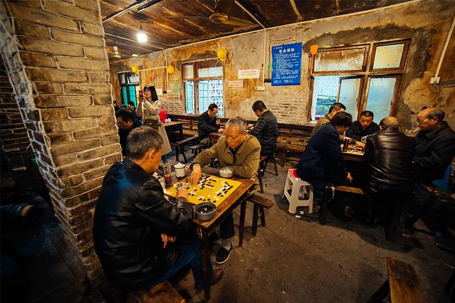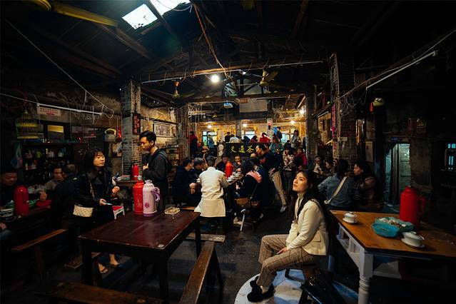 现实与怀旧交织的老茶馆散发出岁月的老重庆气息。老式的桌椅,抹布抹得干干净净的四方桌和长条凳,斑驳的墙体还是不要翻修,这样就很好。和朋友坐在这里打了一下午的斗地主。