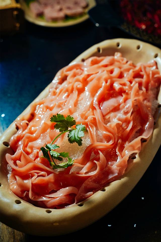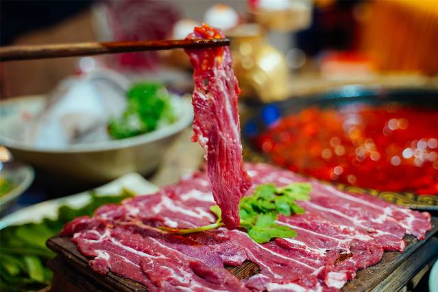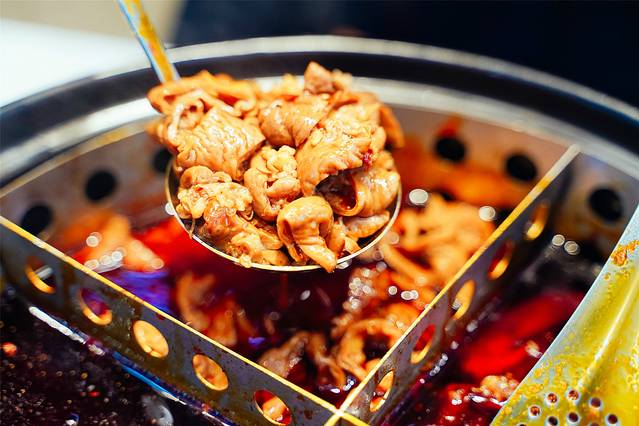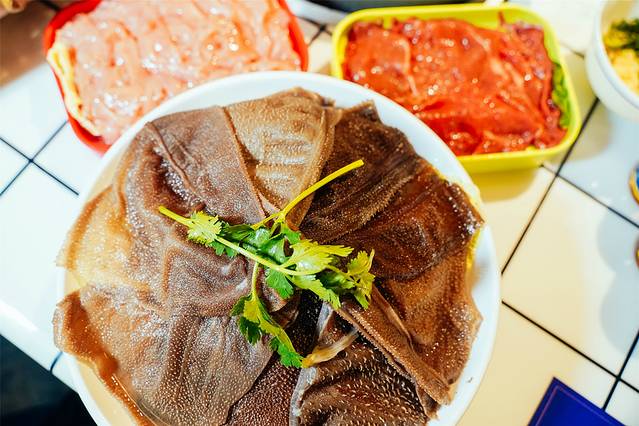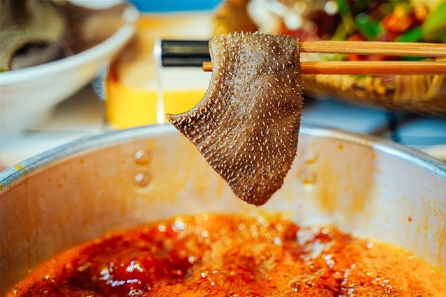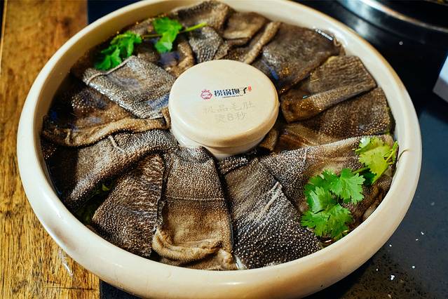 毛肚很大一片,涮几下就可以吃了,建议烫个7、8秒就可以了。