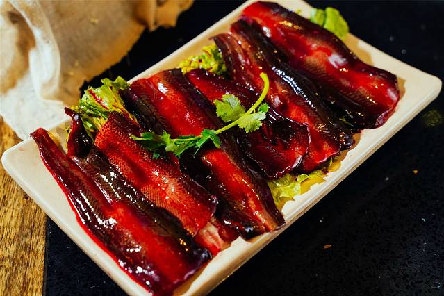 黄鳝,这盘端上来Σ(っ °Д °;)っ看着红红的颜色,我大概就知道是现杀了,有点怕怕,但是放入火锅里又真香哈哈哈哈,果然只有现杀的才会肉质那么嫩~火锅的辣味完全盖掉了海鲜的腥味,完全没闻到有腥味。