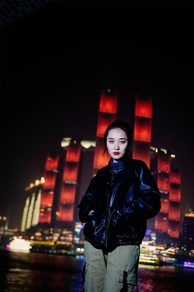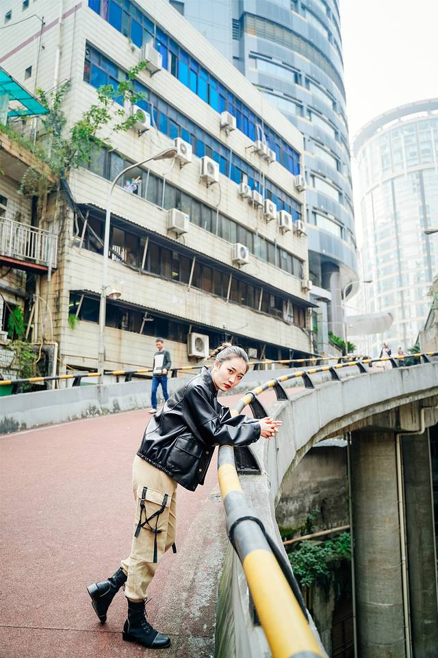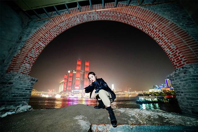 蹲下来以夜景被背景拍全景或者竖屏拍半身照都可~摆一脸我酷酷的表情。