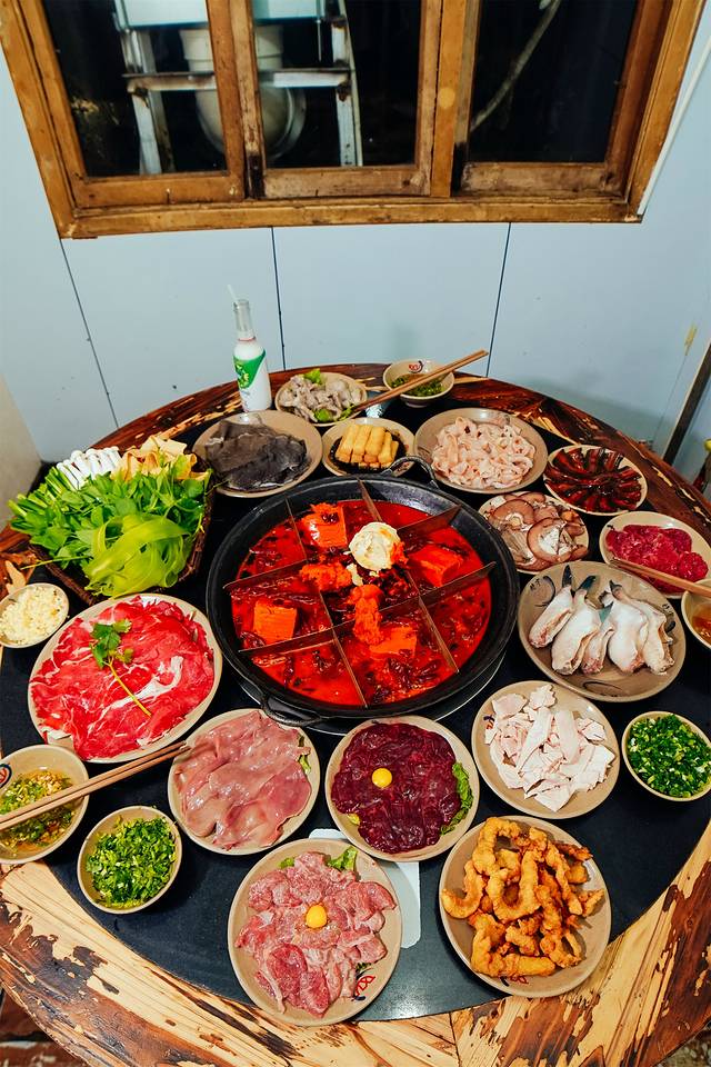 其他游记告诉我来重庆吃火锅,堂食都要全辣,于是跟风点了九宫格,哈哈哈没点我们之前最爱的鸳鸯锅。几个人吃得一直叫冰粉~ 又麻又辣,一次性爽到头顶!太顶了哈哈哈哈,怕辣的小伙伴还是建议多点一点甜品中和一下辣度。