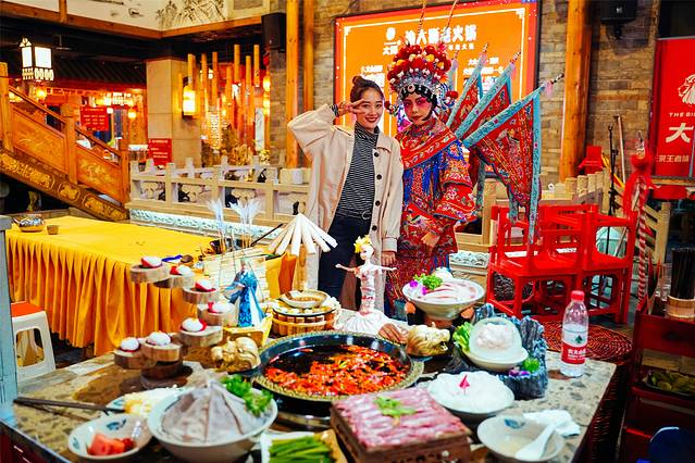 固定时间会有表演人员表演川剧变脸,表演很赞👍估计也是表演很多次了,熟能生巧。