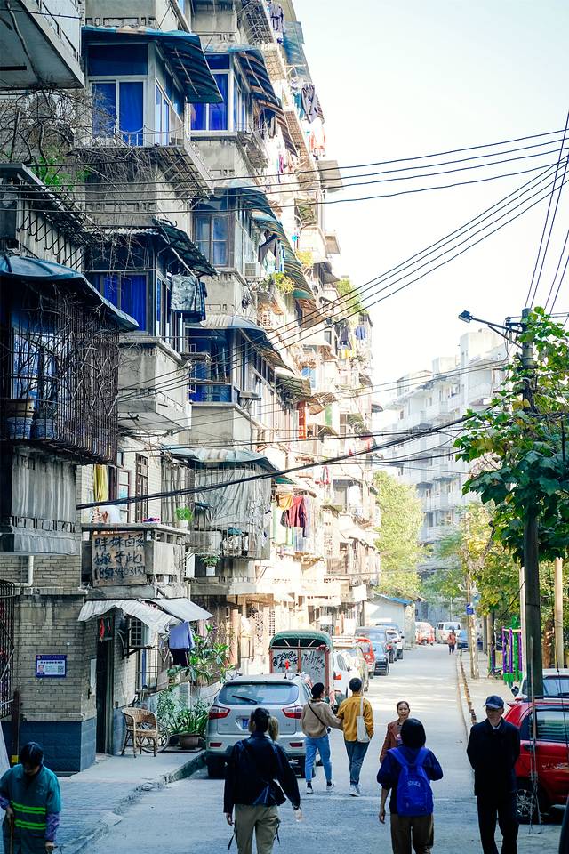 听说不久就要变成回忆了,这里将迎来拆迁,也将迎来一次新生。抬头还能看到新城的高楼大厦,却想象不出它变成崭新的样子。走进这里就好像走进了小时候走进了记忆里的那个老家,横在脑袋上错综复杂的电线,小时候孩子们跳着的皮筋,还有晾着花床单的坝子,特别的宁静祥和。