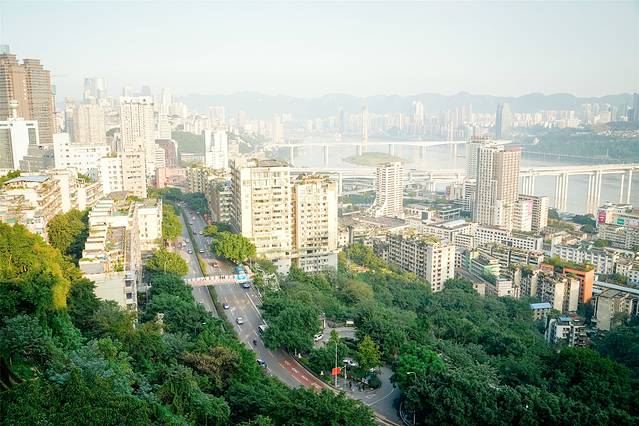 吃饭前观景台的渝中区茂密的大树,看阳光洒下来,心情超级好。