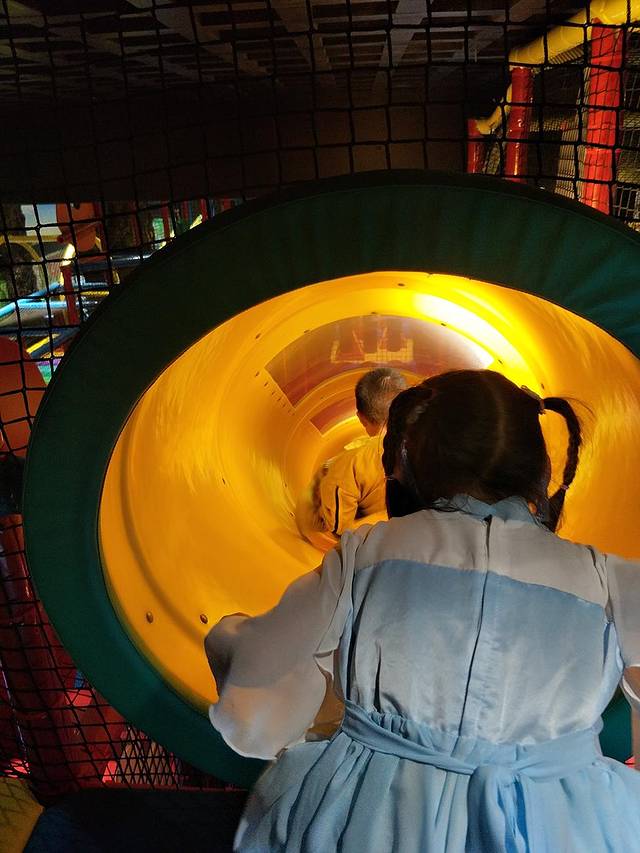 前面的小哥哥等等我,一起玩滚筒滑梯呀~