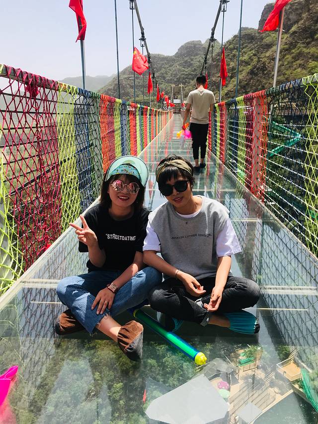 两个美女 一点都不害怕 下面就是悬崖峭壁