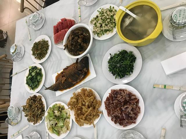 老板给安排的农家饭 大家吃起来感觉比在城市里下馆子吃得香