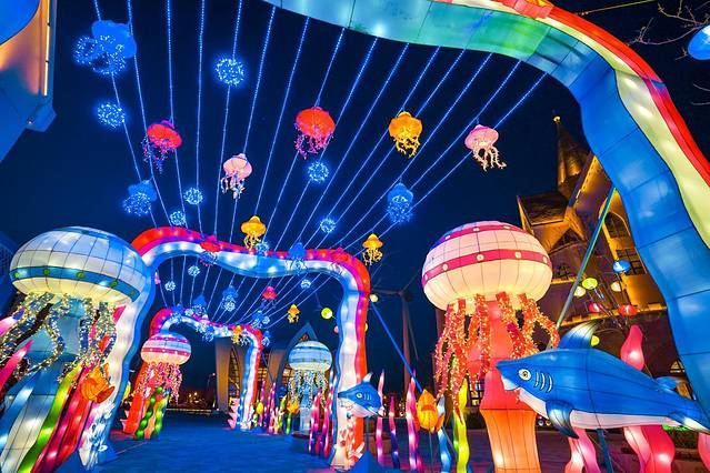 除了新增的夜游场景以外,那香海景区里的夜游体验也是丰富多彩。每当夜幕降临、华灯初上的时候,景区里一派五彩斑斓、斑驳陆离的浪漫景象,很多景点更是成为了向往美好、热爱潮酷的年轻人争相打卡的网红地。