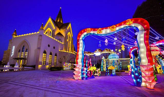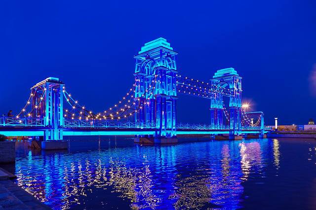 英伦蓝桥和摩天轮可以说是那香海景区夜晚最闪耀的存在。英伦蓝桥造型唯美,英伦风格浓郁。桥体通蓝,搭配黄色暖光,晶莹通亮,如梦如幻。摩天轮色彩斑斓,唯美浪漫,以其极高视角俯视照耀那香海,让夜晚更加绚烂多彩。